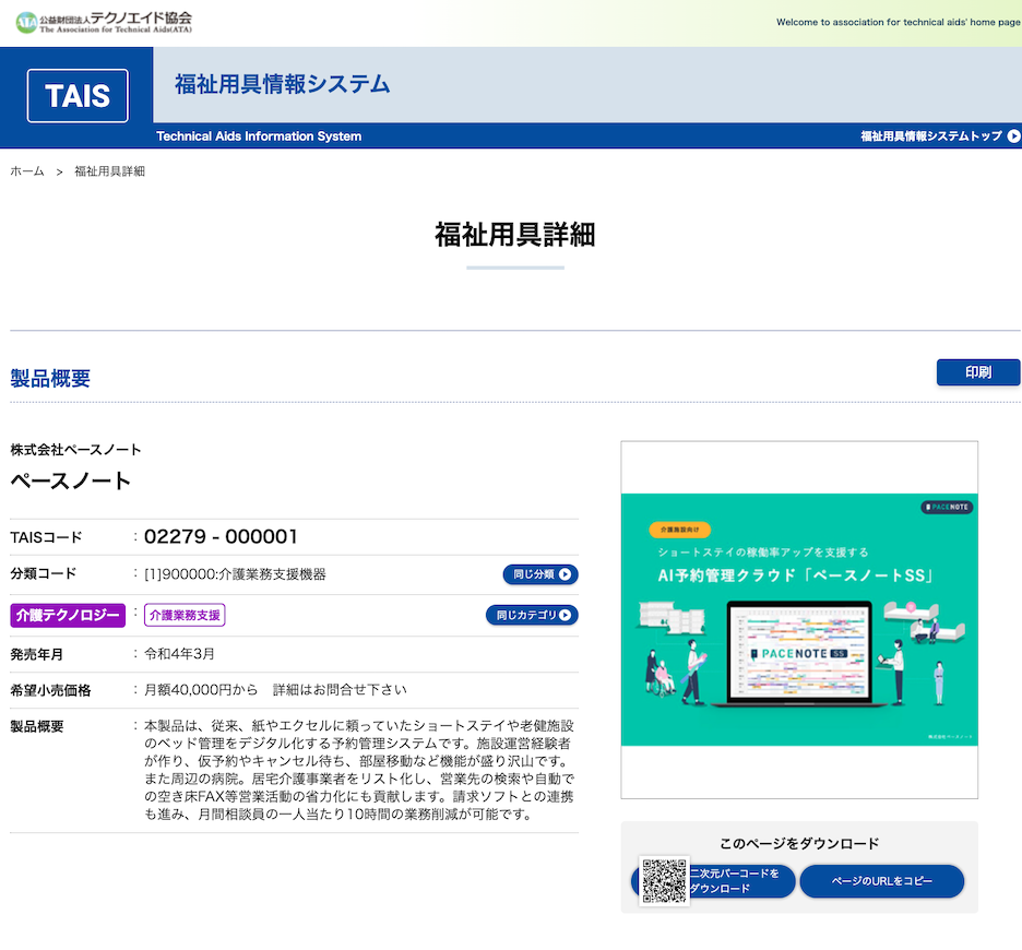 介護業務支援ソフト「ペースノート」、TAIS登録および介護テクノロジー認定のお知らせ